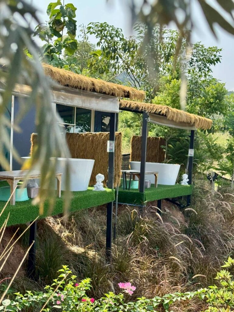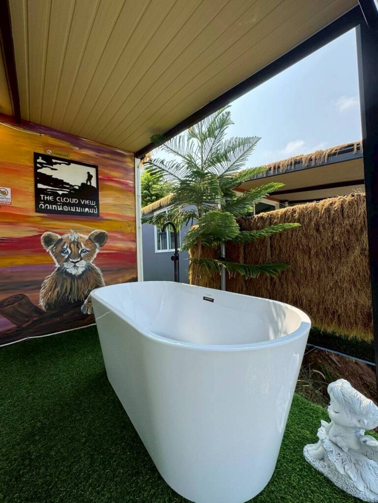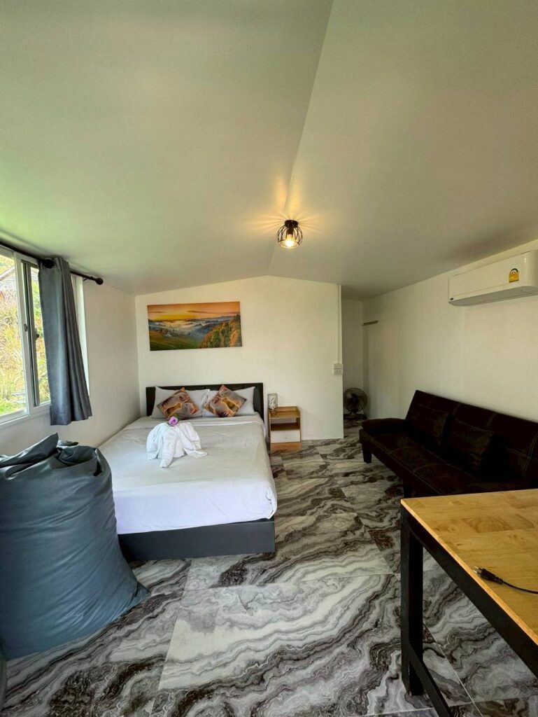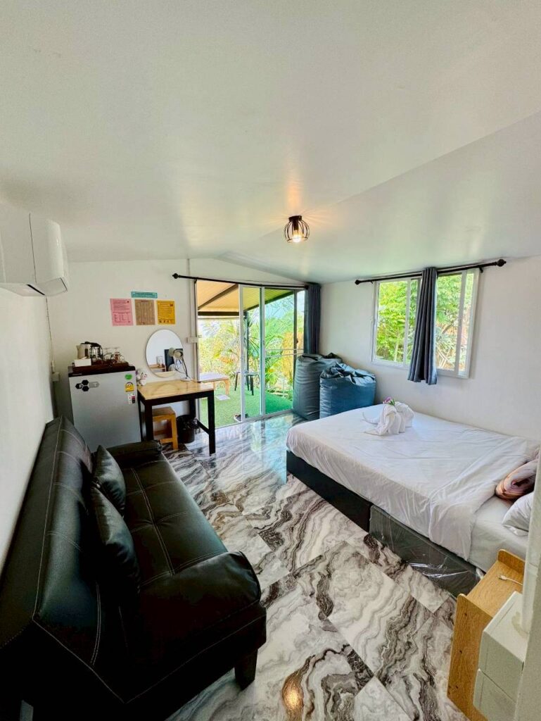Room Type บ้าน ART (มีอ่าง) Byadmin เมษายน 27, 2026เมษายน 27, 2026 รายละเอียด บ้านพักเดี่ยวยกพื้นสไตล์มินิมอล ระเบียงโล่งกว้างหน้าห้อง อ่างอาบน้ำ ห้องแอร์ / ห้องน้ำในตัว พร้อมเครื่องทำน้ำอุ่น เตียงนอน พร้อมชุดเครื่องนอนโรงแรมอย่างดี ตู้เย็น และ โซฟา กาต้มน้ำร้อน กาแฟ และ น้ำดื่ม .
